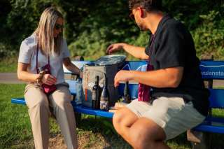 Trois vins sélectionnés de vignerons locaux dans un sac à dos réfrigéré