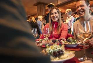 Situé à 1600 m d'altitude, le restaurant d'altitude Chrüz est le point de départ idéal pour commencer la soirée avec une fondue copieuse et danser au rythme de la musique live lors de la fête du ski au restaurant d'altitude.