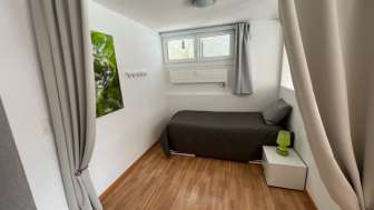 1 chambre à coucher moderne ouverte avec possibilité d'obscurcissement et 1-2 lits (2x 90x200cm)