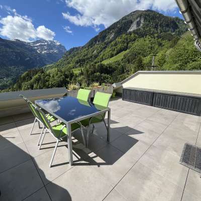 L'appartement en terrasse de 3 1/2 pièces à Valens offre un emplacement calme avec une vue panoramique sur la vallée de la Tamina. Il est aménagé de manière moderne et dispose d'une grande terrasse ensoleillée, d'une cuisine entièrement équipée et d'une connexion WLAN gratuite.
