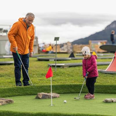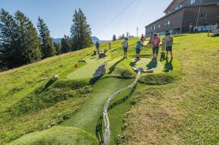 Le parcours de golf Adventure, situé à côté du restaurant de montagne Prodalp, offre un parcours varié de 12 trous. Grands-parents, parents et enfants peuvent y explorer ensemble le bâtiment tortueux de Munggä et envoyer la balle de minigolf en bas du légendaire FLOOMZER.