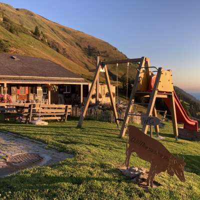 Après un court trajet en train et une randonnée confortable d'une demi-heure, vous pourrez savourer un Älplerkässchnitt ou un délicieux z`Vieriplättli avec des délices régionaux et produits sur l'alpage. Pour les plus petits, une place de jeux se trouve juste à côté du restaurant.