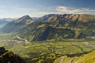 En haut, à la station supérieure située à 1'802 m d'altitude, se trouve un restaurant de montagne dont la terrasse offre aux visiteurs une vue magnifique sur la vallée du Rhin de Coire et les Alpes grisonnes et glaronaises.