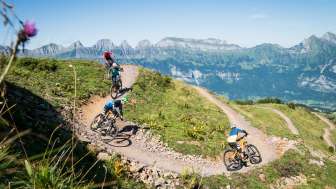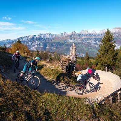 Le Biking on Flumserberg Flumserberg enrichit l'été dans le sud de Saint-Gall. Ainsi, dans cette région de sports d'été variée située entre Zurich et Coire, une offre variée de VTT figure au programme attractif des loisirs. 13 kilomètres de sentiers faciles et de difficulté moyenne avec un magnifique panorama de montagne invitent à des descentes fluides. Trois itinéraires SuisseMobile font le bonheur des fans de VTT. Les nombreux services proposés, des tours guidés en VTT à la location de vélos en passant par le BikerCamping, complètent cette expérience unique sur deux roues.