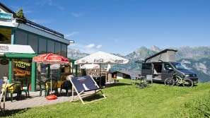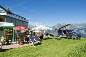 BikerCamping Flumserberg propose des possibilités d'hébergement directement à la station inférieure de la télécabine 12 places Prodalp-Express à Tannenheim. Les campeurs peuvent utiliser l'infrastructure de l'Aparthotel Edy Bruggmann et passer la nuit à proximité des BikerTrails.