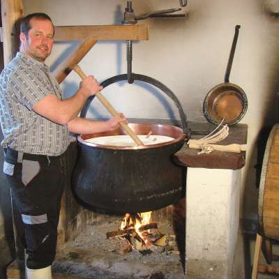 Si vous souhaitez jeter un coup d'œil dans les coulisses, nous vous recommandons une visite guidée de la fromagerie de démonstration avec dégustation de fromage ou bien vous pouvez vous glisser vous-même dans le rôle du fromager. Dans la fromagerie traditionnelle, vous pouvez fabriquer votre propre fromage, sur le feu ouvert, comme à l'époque de la fromagerie d'alpage et traditionnelle de Tannenboden, construite au début du siècle. Combinez la visite guidée avec un repas de midi comme des macaronis d'alpage, une fondue ou une raclette.