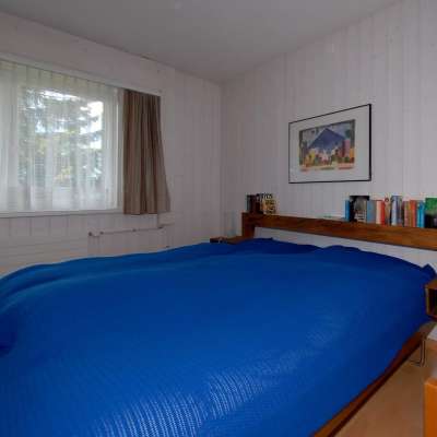 La cuisine est ouverte sur la salle à manger et le salon. Il y a suffisamment de vaisselle pour permettre à une famille de cinq personnes de recevoir des invités supplémentaires. Pour les amateurs de cuisine rapide, il y a un four à micro-ondes, pour les accros au café, la machine correspondante et pour les amateurs de fromage, une garniture à fondue.