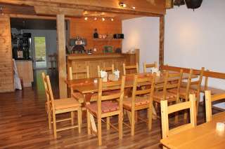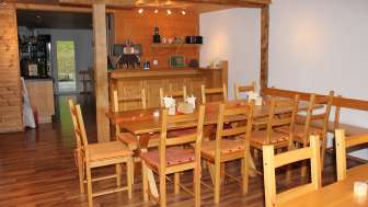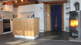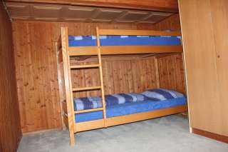 La maison de vacances est confortable et accueillante, avec beaucoup de bois. Les murs du salon et de la chambre à coucher sont lambrissés.