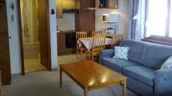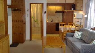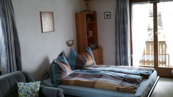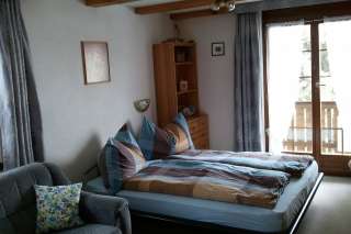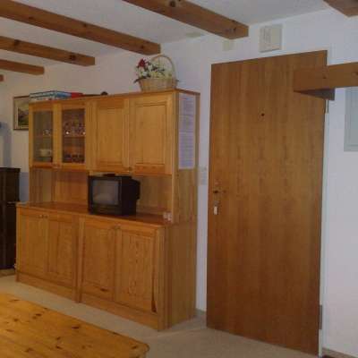 L'appartement au rez-de-chaussée est confortablement aménagé, avec tout ce dont on a besoin. La chambre à coucher, le salon et la salle à manger ne forment qu'une seule pièce et peuvent accueillir 2 personnes. En été, un coin salon avec cheminée est à disposition.