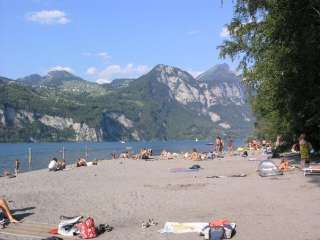Camping en forêt, directement au bord de la plage du lac de Walenstadt