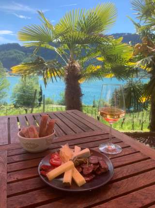 Dans notre Grotto KALIFORNI, directement au bord du lac de Walenstadt, nous présentons nos vins produits par nos soins, des tapas et une atmosphère particulière dans un microclimat entre le lac et les parois rocheuses calcaires abruptes des Churfirsten.