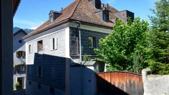 Les peintures imitant des pierres de taille sur la façade, la première rangée de fenêtres qui ne se trouve que très haut au-dessus de la ruelle ainsi que le toit en croupe au-dessus du corps massif le montrent : il s'agit d'une maison de maître. Au-dessus du balcon gracieux trône harmonieusement un pignon à redents, rappelant une culture architecturale étrangère à la région. Mais Wildmannli, sur la façade ouest, nous apprend que l'on était chez soi dans la Ligue des Dix Tribunaux.