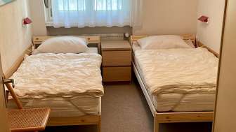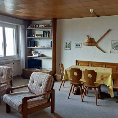 L'appartement spacieux au dernier étage est aménagé de manière fonctionnelle. De belles photos de paysages ornent les murs. L'appartement dispose de deux balcons avec le soleil du matin et du soir.