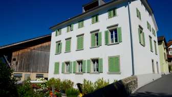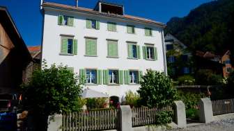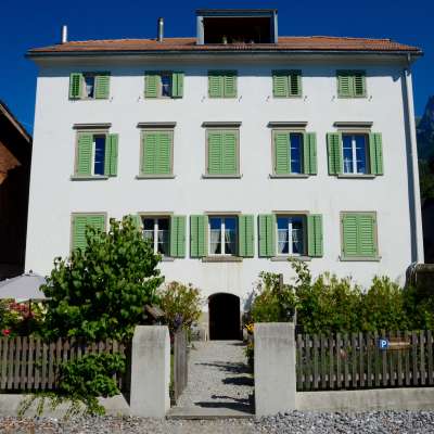 Avec son toit en croupe et la maison d'habitation qui lui fait face, la maison Weinzürle à Jenins constitue une porte d'accès au centre du village. L'entrée en grès et le jardin paysan aménagé de manière géométrique datent de 1860.