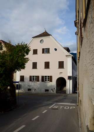 Ce bâtiment de trois étages est l'un des plus anciens du village. Autrefois auberge, puis mairie du district des cinq villages avec le siège de différents services administratifs. Il constituait le bâtiment de tête nord d'une rangée de bâtiments historiques qui s'est développée au fil des décennies et des siècles le long de la route de liaison nord - sud. Outre 1686 comme année de construction, 1702 et 1966 apparaissent comme années de rénovation.