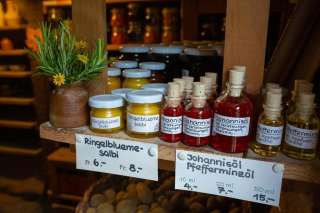 Qu'il s'agisse de confitures faites maison, de légumes marinés de la région, de pommades ou d'autres produits de la région.