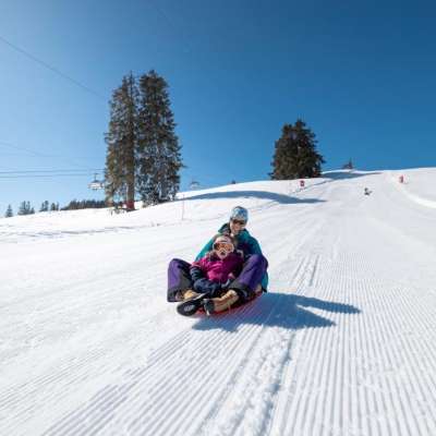 Que ce soit en bob ou en luge de neige, les enfants peuvent se défouler sur la piste de luge et faire autant de descentes qu'ils le souhaitent.