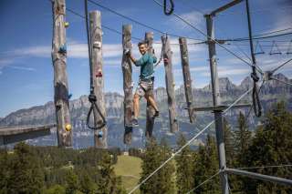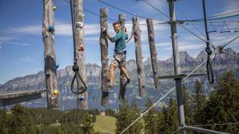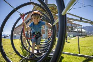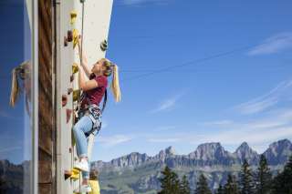 La CLiiMBER Climbing Tower sur Prodalp offre plus de 100 stations d'escalade sur trois étages. Avec des voies flexibles et différents niveaux de difficulté, elle est idéale pour les familles et les groupes. Le MiniCLiiMBER et le flyingCLiiMBER offrent des expériences supplémentaires.