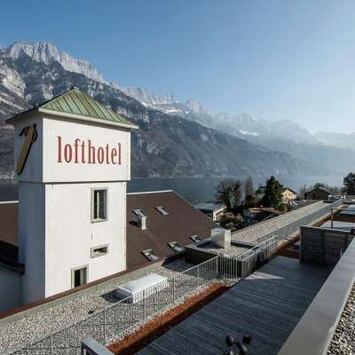 Le lofthotel au bord du Walensee à Murg offre une vue impressionnante sur le Walensee et les Churfirsten. Il dispose de possibilités d'hébergement uniques, dont une grande loftsuite et des wagons de marchandises CFF transformés. Des activités de loisirs telles que des vélos électriques et un sauna au bord du lac sont à disposition.