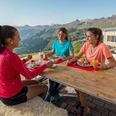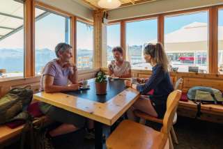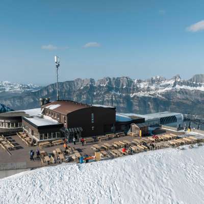 Profitez de la vue panoramique sur les montagnes environnantes dans l'établissement gastronomique le plus élevé du Flumserberg. Laissez votre regard se détendre d'un côté sur l'étendue de la région du Spitzmeilen avec son emblème caractéristique, le Spitzmeilen, qui culmine à 2501 m, ou laissez-vous envoûter de l'autre côté par la magie de la chaîne des Churfirsten et des Alvier, avec leurs sommets déchiquetés, bien au-dessus du lac de Walenstadt.