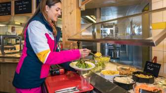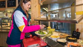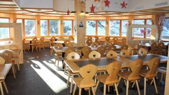Dans le bâtiment rond et lumineux, 80 places assises sont à votre disposition. Dans la spacieuse salle, 240 invités peuvent profiter de la vue sur les Churfirsten et le confortable Stübli offre 48 places avec une vue imprenable sur la région du Spitzmeilen. Sur l'immense terrasse ensoleillée, 600 invités peuvent admirer en même temps le panorama à couper le souffle (200 places assises). Des chaises longues sont en outre à disposition.
