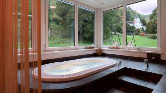 Relax.oase dans le parc du château : 300 m² de bien-être avec sauna, bain de vapeur, jacuzzi & piscine extérieure - la détente à l'état pur au cœur de la nature.