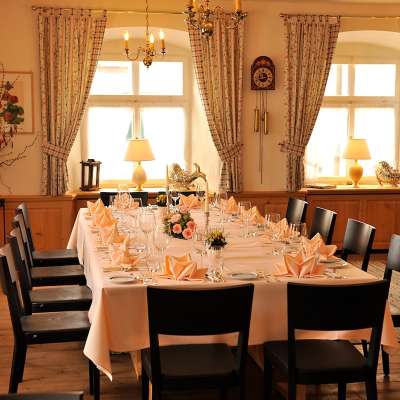 Dans la Nidbergstube, élégamment décorée, l'accent est mis sur les menus pour gourmets, tandis que dans la Schlüsselstube, le client trouve des plats pour tous les jours dans une atmosphère sereine. Le tout accompagné d'une carte des vins grandiose avec des vins sélectionnés. Marianne Blum et son équipe apportent une touche charmante et affectueuse au service.
