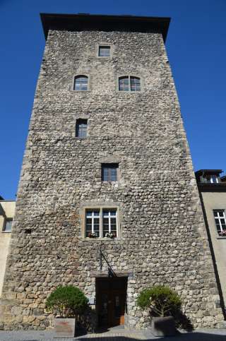 L'imposante tour du château, le plus ancien corps de bâtiment de l'ensemble du château, a été construite vers 1247. Au début du 15ème siècle, le château a pris toute son ampleur avec le palais (avec chapelle, salle de justice et pièces d'habitation) et les fermetures de la cour avec mur de défense et pont-levis. Aujourd'hui, le château comprend des locaux gastronomiques, des appartements et un vignoble. Il est la propriété d'une famille locale.