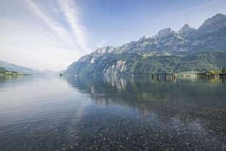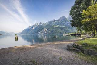 Emplacement de vacances pour tentes, caravanes et camping-cars. Directement sur la rive est du lac de Walenstadt, à environ 1 km de la petite ville de garnison. Point de départ pour de belles excursions en voiture, à vélo ou à pied.
