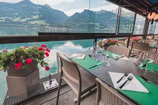 En été, il est incontestablement plus agréable de savourer un repas sur la grande terrasse du lac ou sous notre platane. La terrasse du lac est résistante aux intempéries (stores tous temps) et peut également être chauffée si le temps le permet. Profitez de la vue sur le lac de Walenstadt et de l'atmosphère apaisante de Quinten.