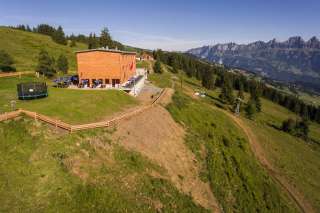 Depuis 1976, notre téléphérique Bartholet transporte les visiteurs de Flums-Saxli directement à Schönhalden.