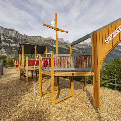 L'aire de jeux près du restaurant Neuschönstatt à Quarten offre aux familles et aux enfants la possibilité de se défouler après le repas. Parmi les attractions, on trouve une tour à grimper, une balançoire hamac, un bac à sable et un toboggan.