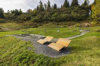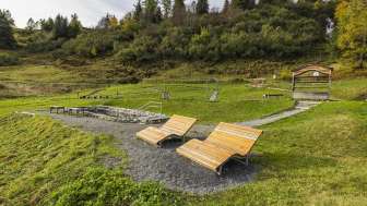 L'aire de jeux Heidipfad Pizol à Wangs offre aux enfants différentes expériences sensorielles et possibilités de jeu. Des chemins à pieds nus, des sentiers en pierre et une installation Kneipp invitent à la découverte. Des bancs et des chaises longues en bois permettent de se détendre.