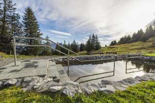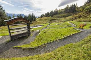Cette aire de jeux stimule les différentes expériences sensorielles et le comportement ludique des enfants. Il y a différentes surfaces sur lesquelles on peut marcher pieds nus ou avec des chaussures. Il y a de grands et de petits chemins de pierre à explorer, ainsi que des chemins avec des planches, des copeaux et de la terre. L'installation Kneipp avec marche dans l'eau est particulièrement appréciée en été. Des bancs et deux chaises longues en bois invitent à la détente.