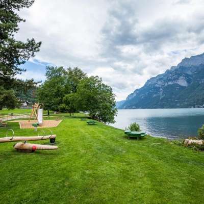 La plage de Mols offre une vaste pelouse et une petite plage de galets. La plage en libre accès fait partie de l'expérience ludique du Walensee et dispose d'une aire de jeux intégrée.