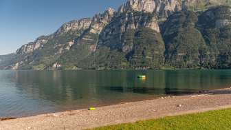 La plage d'Unterterzen, au bord du Walensee, offre une vaste pelouse, un kiosque de plage et une plage de galets. Les amateurs de sports nautiques peuvent louer des kayaks ou des planches de SUP. Des vestiaires et des toilettes sont disponibles.