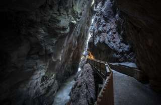 Les gorges de la Tamina, près de Bad Ragaz, offrent un chemin sûr de 450 mètres de long qui mène à la grotte d'eau de source. Ici, 8000 litres d'eau thermale par minute jaillissent de l'acratère le plus productif d'Europe, à une température constante de 36,5 °C.