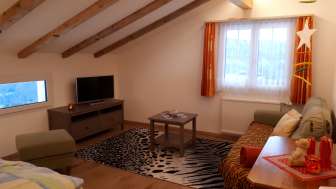 Les trois appartements sont confortablement aménagés et disposent d'un salon avec canapé, couchage et TV à écran plat, d'un coin repas avec table, banc et chaises ainsi que d'une petite cuisine avec tout le nécessaire. Salle de bain avec WC, baignoire ou douche.