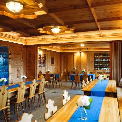 Construite en 1926, la Bündnerstube, avec son célèbre poêle en faïence bleue, invite à s'attarder, surtout en hiver.