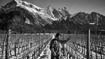 La vigne et le vin sont notre passion, notre motivation. Nous aimons le métier, les travaux variés au fil des saisons. En hiver, lorsque nous posons les bases du millésime à venir en taillant la vigne sous le ciel dégagé de la Bündner Herrschaft . En été, lorsque les gouttes de rosée scintillent sur les feuilles de vigne le matin, lors du travail sur le feuillage. Et tout particulièrement en automne : c'est alors que nous vendangeons avec l'équipe des vendangeurs - chez nous, cela s'appelle d'ailleurs "wimmle" - et que commence ensuite le travail dans la cave.