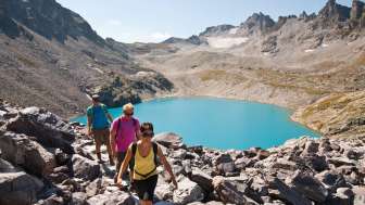 Wildsee, Schottensee, Wangsersee, Schwarzsee ou Baschalvasee : chacun des cinq lacs du Pizol est un bijou en soi et si différent que l'observateur ne peut plus s'empêcher d'être étonné. La randonnée des 5 lacs, qui permet de passer par tous les lacs de Pizol, est considérée comme un classique de la randonnée en Suisse. La randonnée commence à la Pizolhütte au bord du lac de Wangsersee. La montée jusqu'à la Wildseelücke à 2'493 m, d'où l'on a une belle vue jusqu'à l'Ortler et le Piz Kesch, dure environ une heure. En dessous de la brèche, à 2'438 m, se trouve le Wildsee, avec son eau d'un bleu laiteux, qui semble presque peint dans le paysage alpin aride et inhospitalier. En arrière-plan, on découvre le glacier du Pizol, le sommet du Pizol et les Grauen Hörner. Après une courte descente, on arrive au Schottensee, un lac aux reflets verts situé à 2'335 m, dont l'eau claire incite même les plus endurcis à se baigner de temps en temps, par une belle journée d'été. On continue ensuite vers le Schwarzsee (lac noir) à 2'368 m, qui, contrairement aux deux premiers lacs, semble plutôt sombre et menaçant. Rien d'étonnant à cela, puisque la légende dit qu'un taureau vit ici dans l'eau. En passant devant de nombreuses vieilles pierres, on arrive enfin au lac de Baschalva, à 2'174 m, dont la couleur rivalise avec le vert des pâturages environnants.